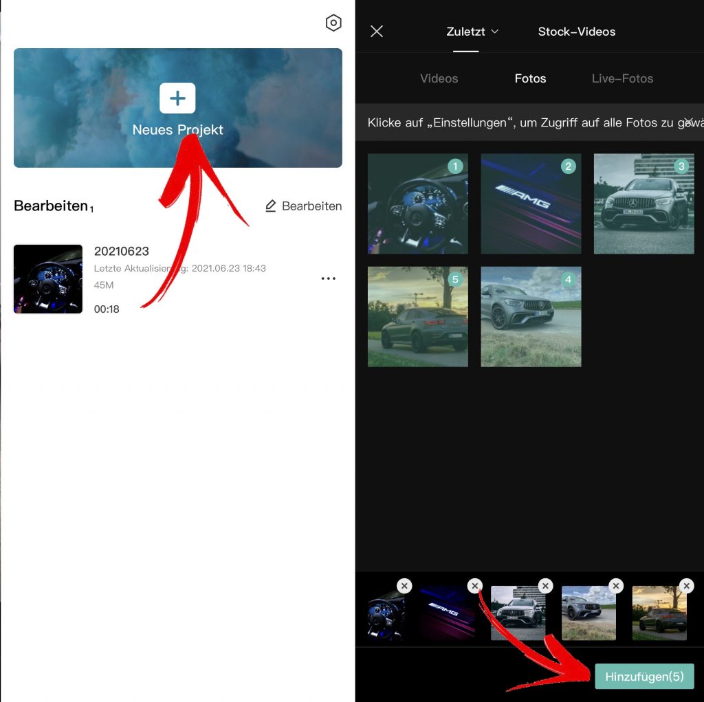 Sobald du die App geladen hast, kannst du schon mit dem Import einiger Fotos und dem Anlegen eines Projekts loslegen: