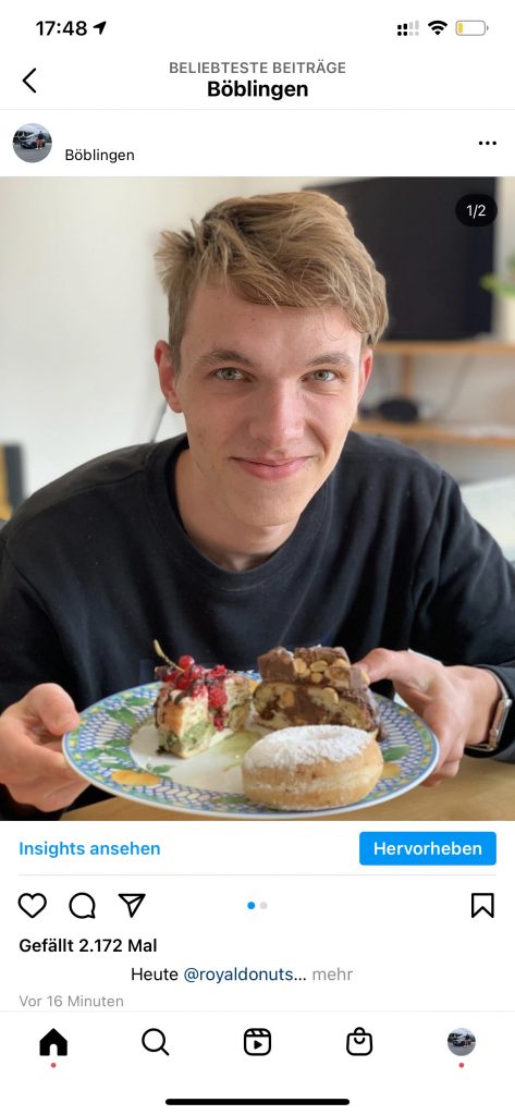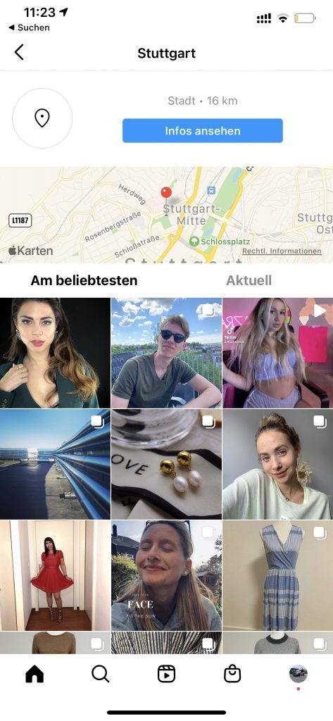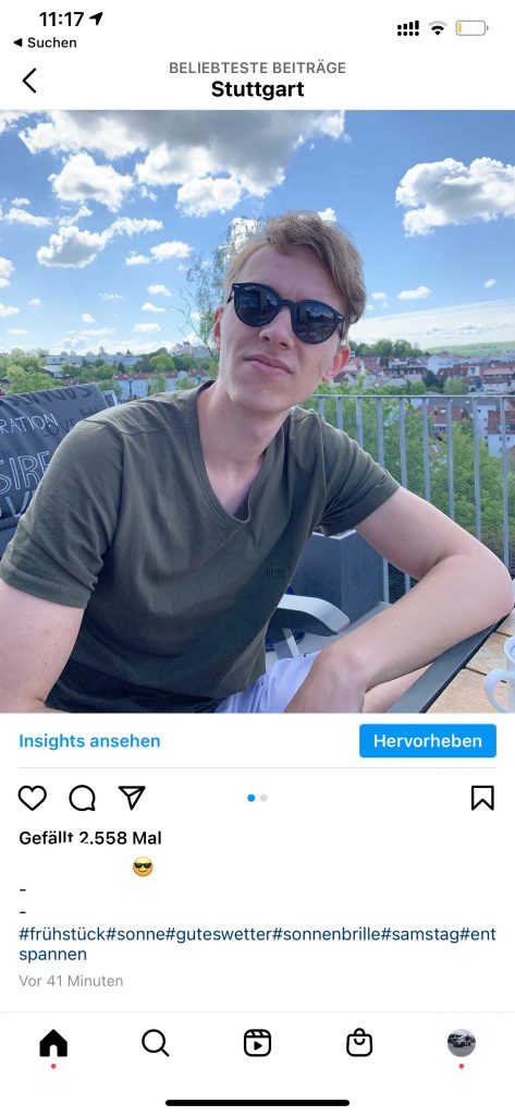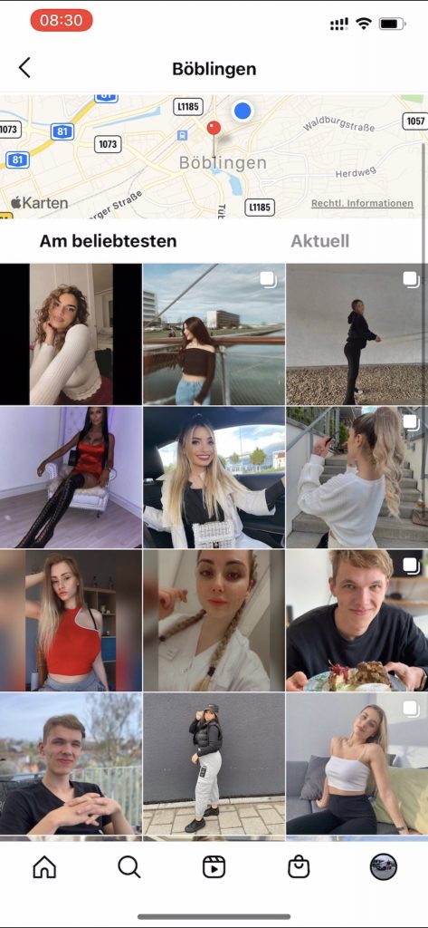 Nun als Location wurde hier Böblingen angebenen, dort ladet der Beitrag zwar nicht an der Spitze aber doch schon sehr out-of-place mit AMGs und Posts von Accounts mit zumindest mehreren hundert oder tausenden Followern. Es gibt schon mal einen Eindruck wie mächtig das kaufen von Likes sich potentiell auf den eigenen Post auswirken kann