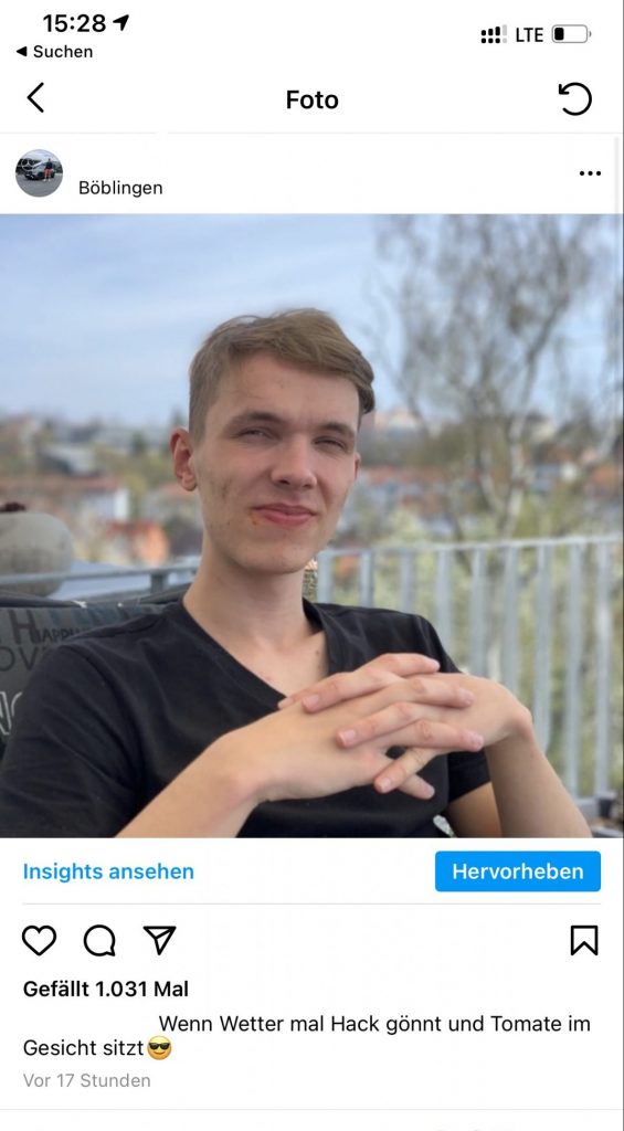 Ganz ohne Follower lediglich ein Beitrag, sogar mit Tomate im Gesicht. Nun gut kaufen wir ein paar Likes. Nach dem Kauf startet die Lieferung schnell und die Likes kommen innerhalb weniger Stunden vollständig an und nun hat unser Post über 1K Likes mit ganzen 0 Abonnenten. Toll aber kann das überhaupt Rankings bringen?